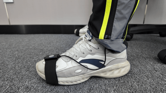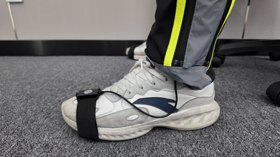 为保证动作精度,请按照下图进行脚部IMU的穿戴。